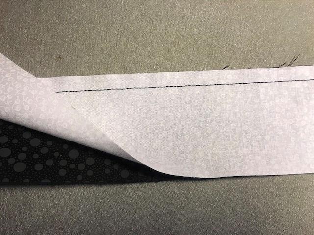 Læg dem dobbelt ( ret mod ret) og sy på begge sider af stregen ( 0,75 cm fra stregen)