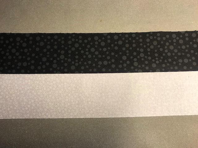 Når man her skal bruge så mange ens, er det nemmest at skære lange strimler på 6.5 x 110 cm.