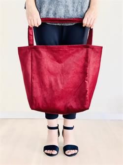 Denne smarte MEGA shopper er syet i fløjel men kan jo syes i alle lidt kraftige stoffer.
