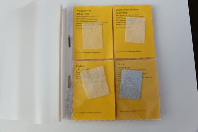 I denne flotte og praktiske mappe finder du prøver på mere end 20 forskellige mellemfoer. Hver prøve er ledsaget af en kort tekst og beskrivelse på dansk, så du hurtigt kan slå op og se, hvilket produkt der passer bedst til dit projekt. Med denne mappe i hånden bliver du aldrig mere i tvivl om forskellen på f.eks. H180 og H250, eller hvad Viledon og Vlisofixegentlig er.