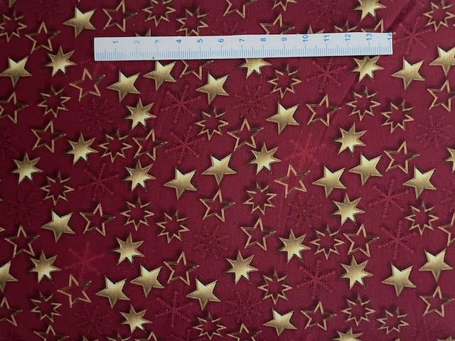Er et flot mørkerød bred bomuldsstof med flotte forskellige stjerner.