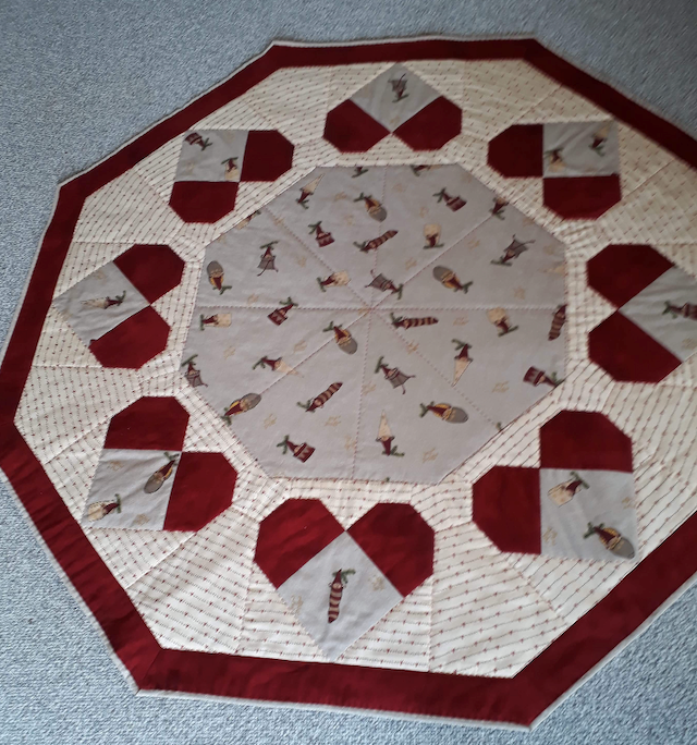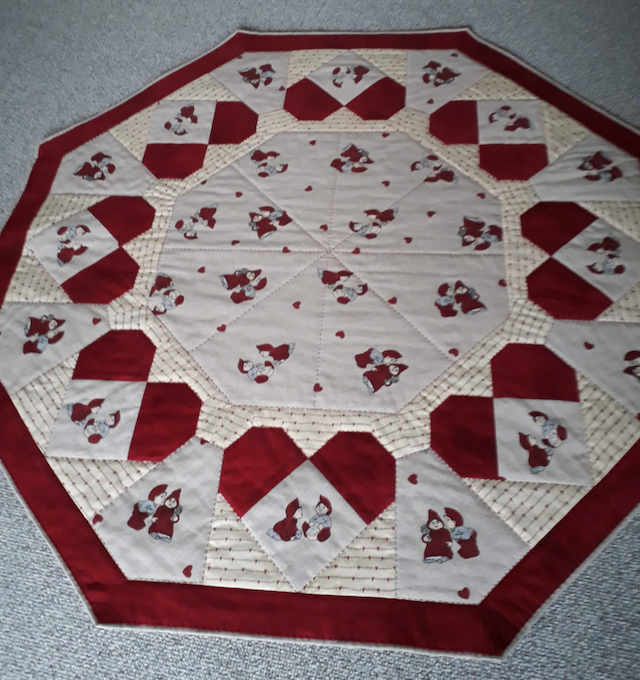 Mønster til Mie Dug/Juletræstæppe med 8 eller 16 hjerter, som måler 116 x 116 cm eller 184 x 184 cm