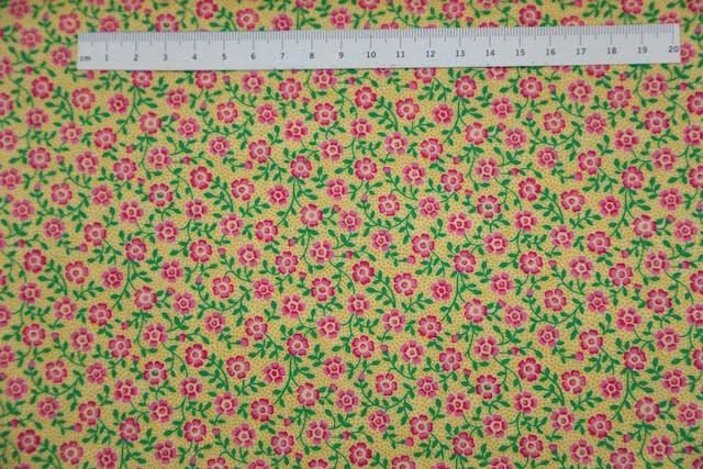 Mini blomster på patchworkstof -  Gul orange ens