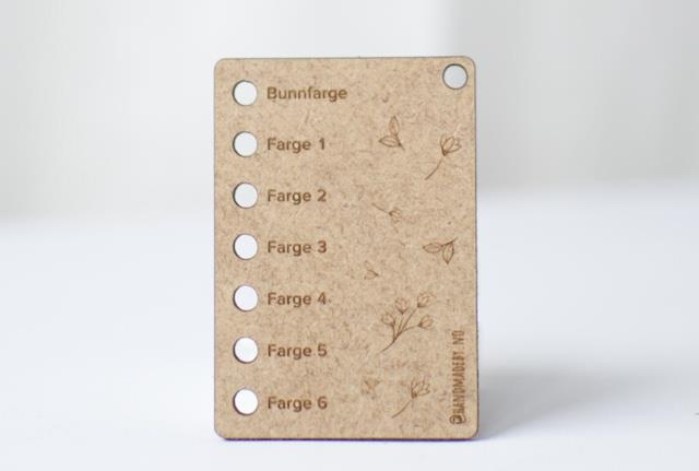 Denne smarte farvekort er der huller så du kan sætte 6 farver + bundfarven i af det gran som du er ved at strikke af.