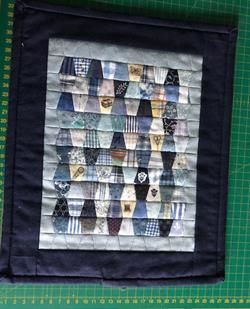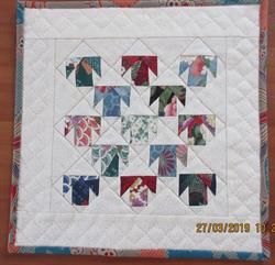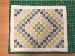 Sy en mini quilt enten i hånden eller på symaskine og vind 250 kr til HANNES patchwork.