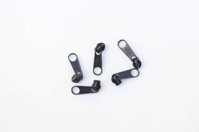 Disse mørkeblå skyder/ glider passer til 4 mm lynlåse i metermål og har et flot lidt aflangt vedhæng med et rundt hul i.