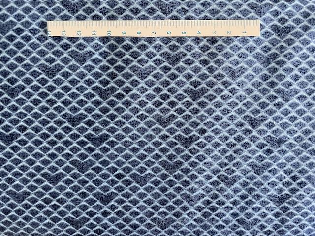 Mørkeblå patchworkstof med buer og hjerter