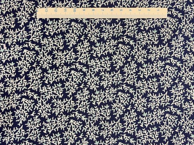 Mørkeblå patchworkstof med gren mønster