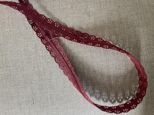 Mørkerød blonde lynlås i metermål 4 mm pris pr 1/2 m inkl 1 skyder