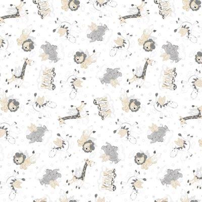 Dette meget flotte lys patchwork stof har masser af søde forskellige dyr i alle retninger.