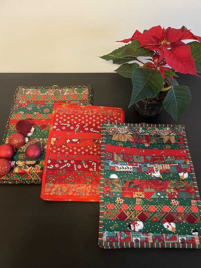 Det har jeg gjort på denne nemme måde og med lidt trylle støv har jeg fået syet disse søde reste jule grydelapper