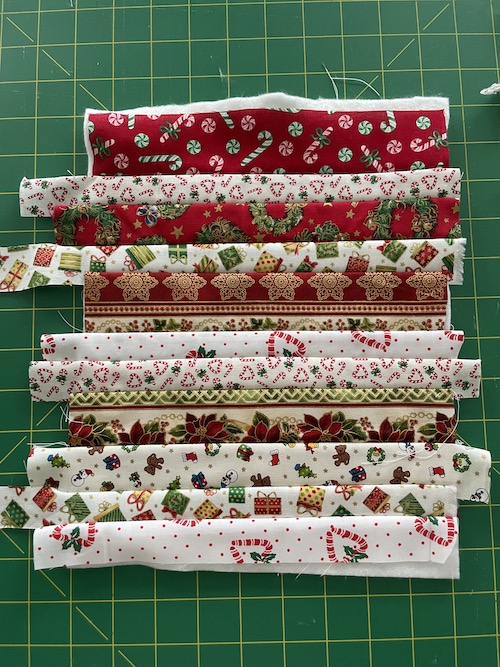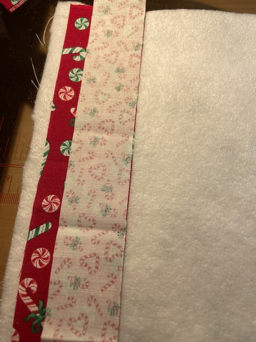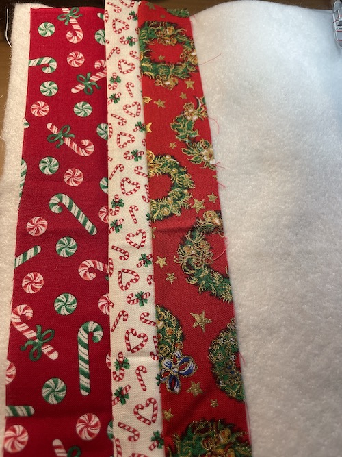 derefter kommer 3. strimmel på og ja syer/quilter på samme måde.