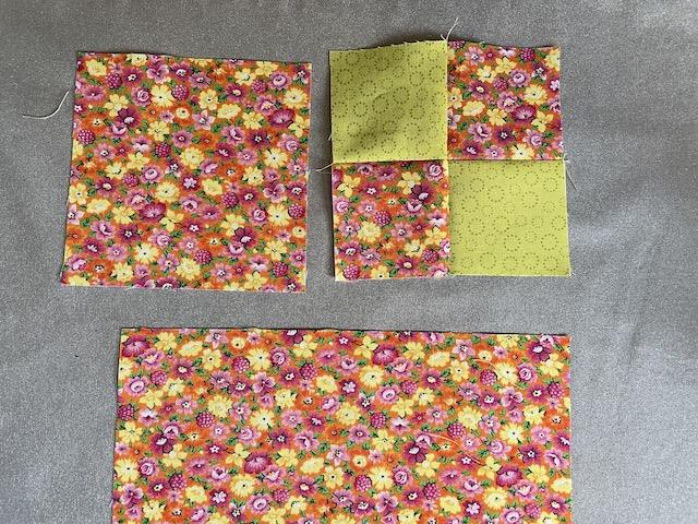 først en af hver farve og så sy dem sammen til ialt 4 små firkanter til en "stor" firkant.