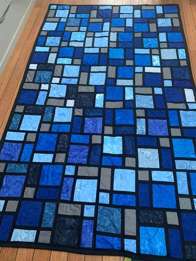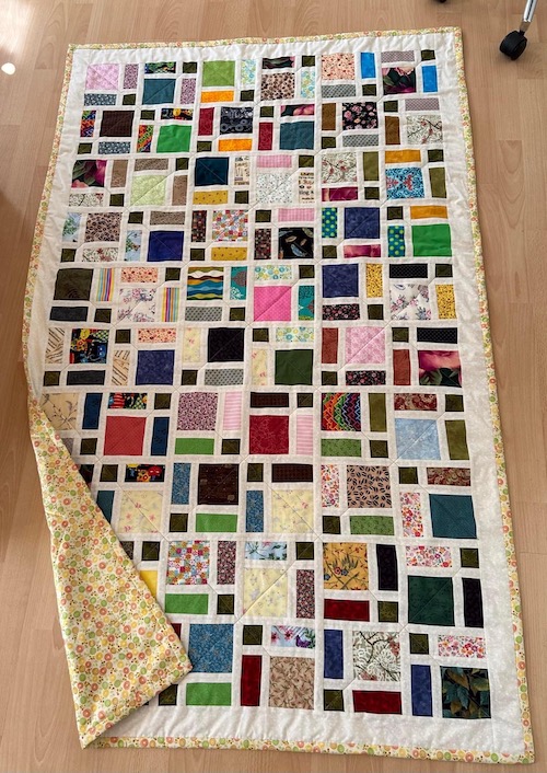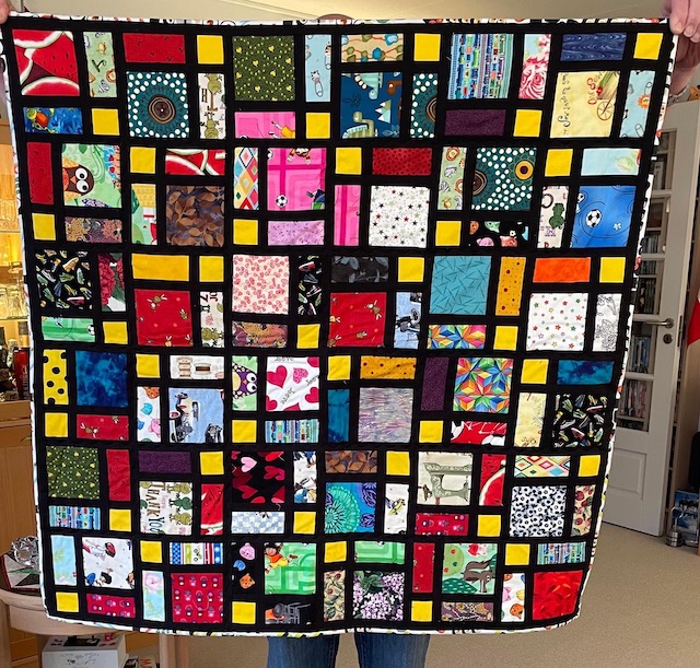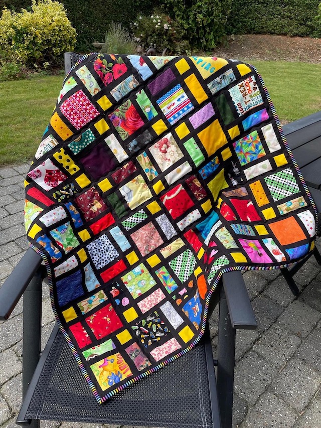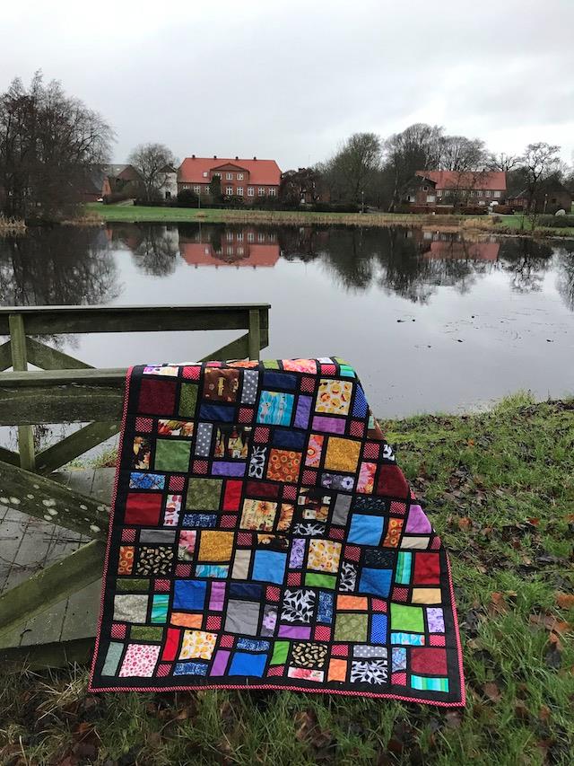 Men har du en masse rester i 12 x 12 eller 8 x 8 kan de også nemt bruge til dette slumretæppe.