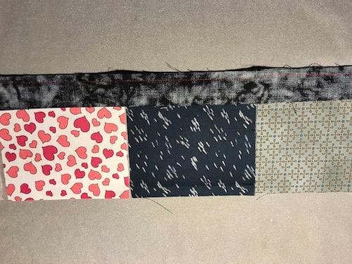 Dette restetæppe er perfekt til stofrester, som her er 10 x 10 cm.