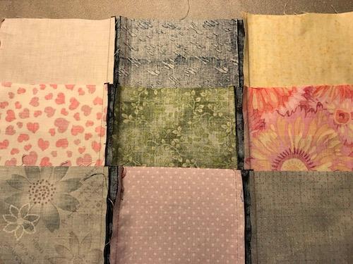 Firkanter på 10 x 10 cm af alle mulige stofrester.