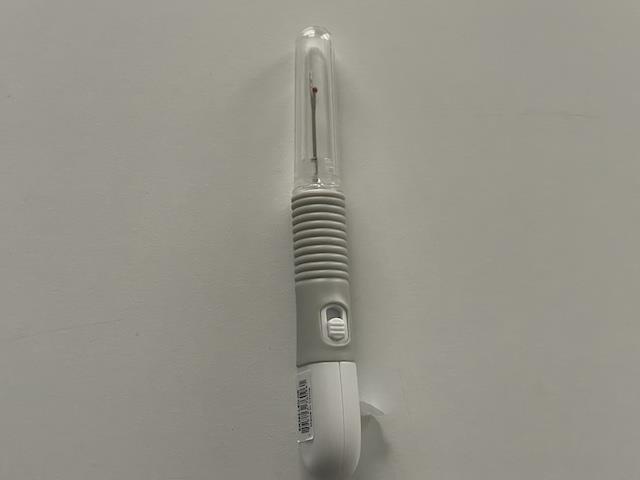 En gennemsigtig hætte følger med og fungerer både som beskyttelse af spidsen og som sikker opbevaring, når opsprætteren ikke er i brug. Med hætten måler den ca. 14 cm og har en god længde, der gør den nem at styre – også ved finere arbejde.