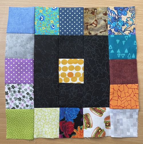 Til den ene blok (midten af blokken) er der brugt i "reste farve" 1 firkant på 6 x 6 cm
