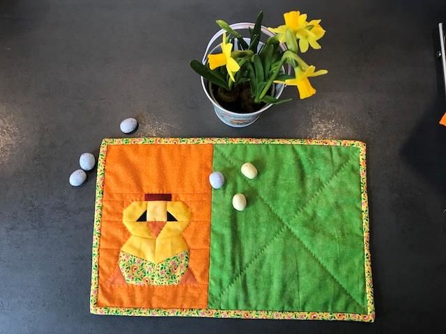 Påske kylling på Dækkeserviet mønster med de papskabeloner du skal bruge for at sy en smuk dækkeserviet. Mønster er designet af Ketty.