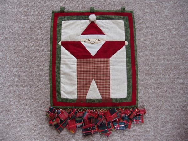 Dette patchwork mønster indeholder papskabeloner, lige klar til at klippe ud, samt en sy vejledning. Størrelse 44 x 51 cm Pakkekalender - rigtig flot - lige til at hænge pakker på. (Ringe, medfølger ikke.)