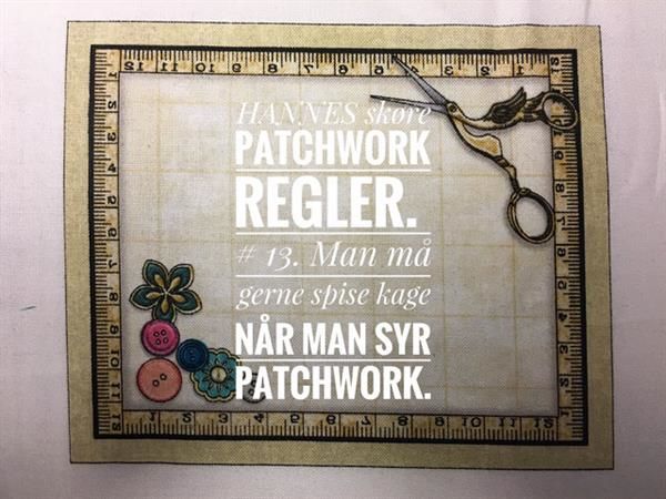 HANNES patchwork skøre regler #13 Man må gerne spise kag når man syr patchwork.