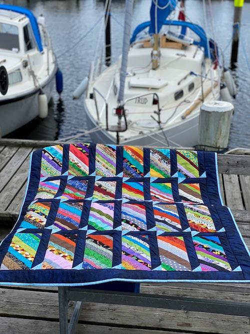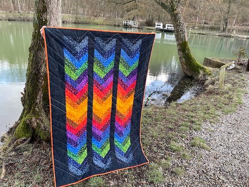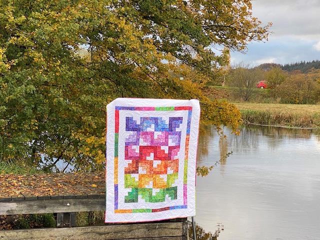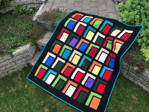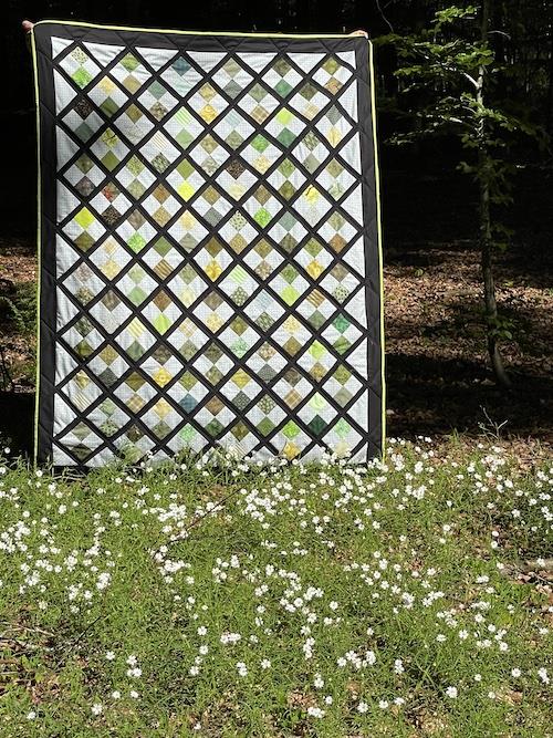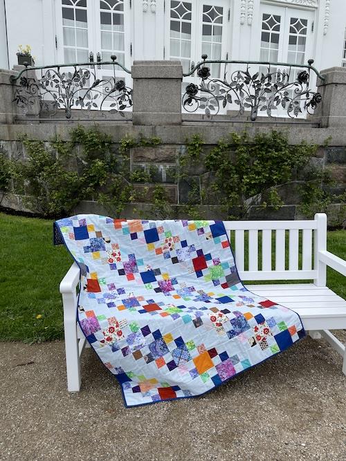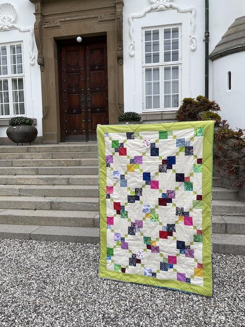 Nine patch tæppe med sorte stolper - gratis mønster finde du her