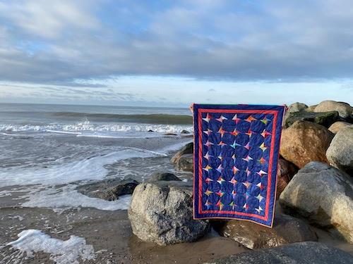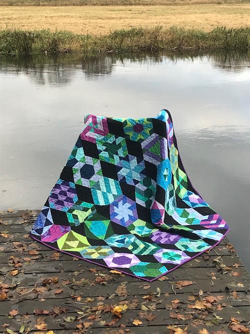 Tæppet med skæve stjerner finder du her helt gratis til dig fra HANNES patchwork.