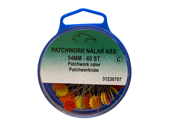 Denne æske med patchworknåle der er lang og med flad hoved og indenholder 60 stk nåle