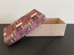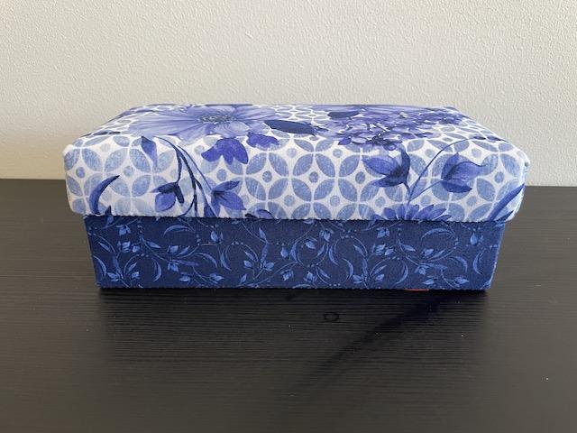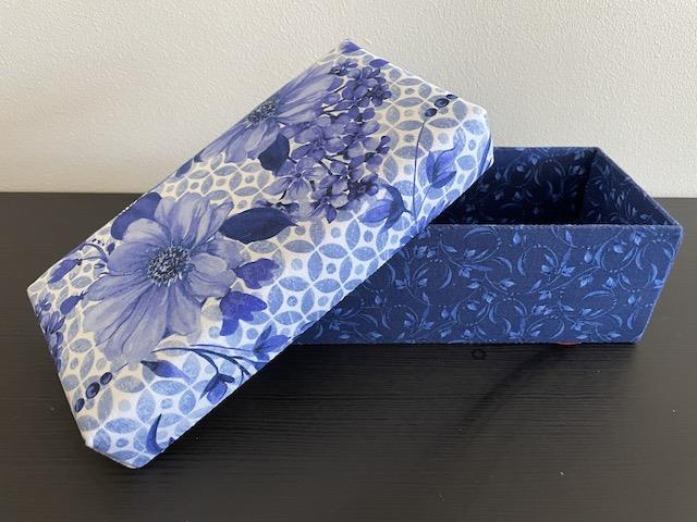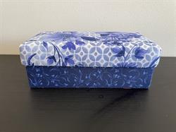 Vil du sætte dit eget præg på æsken? Så kan du beklæde den med stof i dine yndlingsfarver eller mønstre. Hvis du ønsker, at låget og bunden har hver sin farve, skal du bruge 2 stykker patchworkstof á 30 x 110 cm i fuld bredde. Det giver dig mulighed for at skabe en helt unik opbevaringsløsning, der passer ind i dit kreative univers.