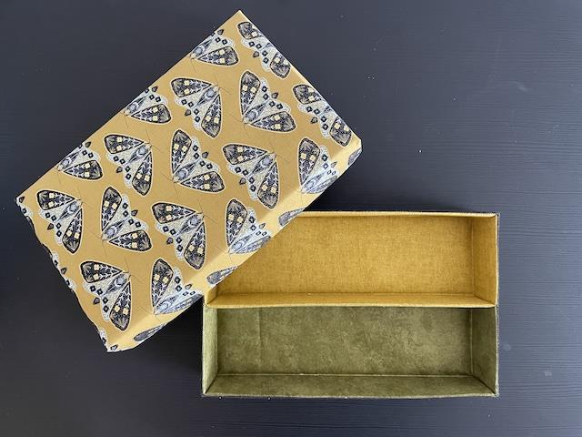 Ønsker du at give syæsken et personligt præg? Det er nemt! Du kan beklæde den med dit yndlingsstof – og hvis du vil have låg og bund i to forskellige farver, skal du bruge to stykker patchworkstof i fuld bredde (2 x 50 x 110 cm). Det giver dig mulighed for at skabe en unik æske, der passer perfekt til din stil og dit syværksted.