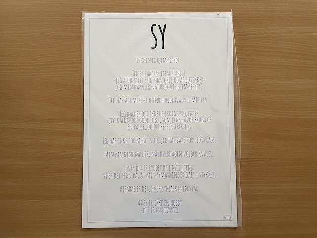 Plakat til sypigen. Pynter på et hvert sy værelse med søde ord om hvorfor vi syr .