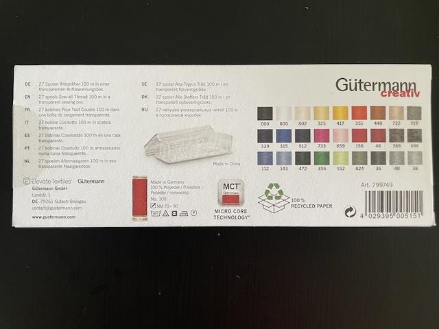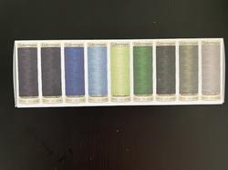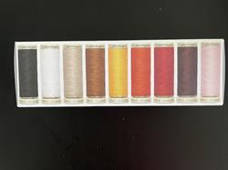 Prisen er for hele pakken med 27 ruller sytråd i hver sin smukke farve, som er farve nr 000+800+802+417+351+448+722+727+339+315+512+733+659+156+46+369+696+112+143+472+396+152+824+36+40 og nr 38 i en smuk plast æske med låg.