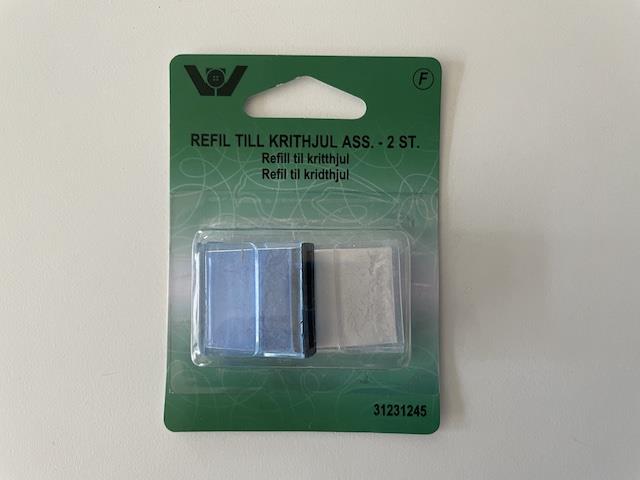 2 stk refill til rød kridthjul der nemt at lave en fin tynd kridt streg på dit patchwork stof, ved at føre den hen over stoffet.