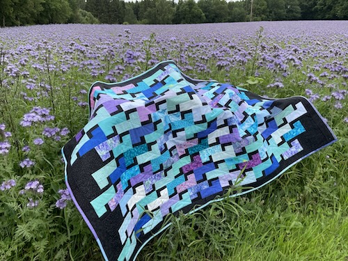 Har quiltet diagonalt med en meleret quiltetråd igennem de store rektangler.