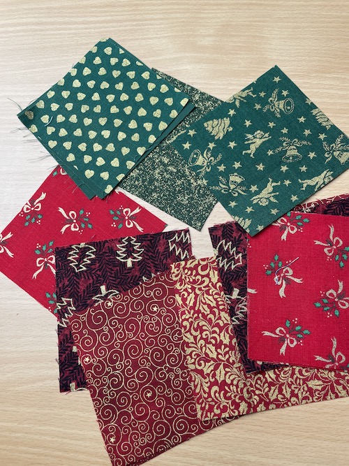 Forside » Gratis DIY og Inspiration » Patchworktæpper med danske bynavne 🇩🇰 » Patchwork tæpper opdelt efter landsdele » Jylland - restetæpper med jyske by navne » Reste juletræstæppe med skæve stjerner - Låsby tæppet Reste juletræstæppe med skæve stjerner.
