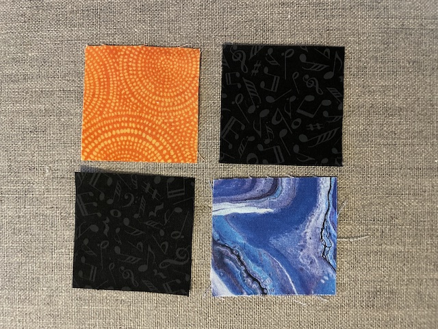 I denne uge skal du sy 4 firkanter sammen, der alle består af 4 firkanter på 6 x 6 cm.