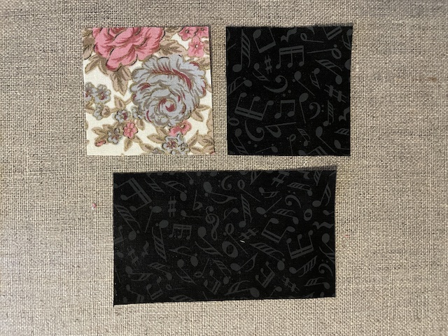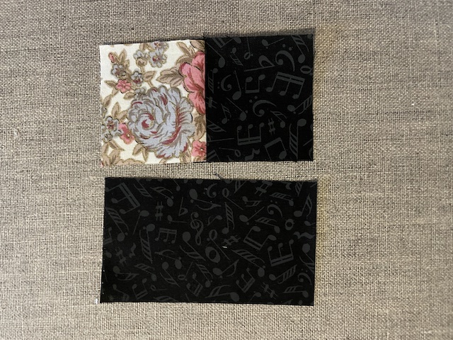 Start med at sy de to firkanter på hver 6 x 6 cm sammen og sy derefter dit rektangle på som på billede.