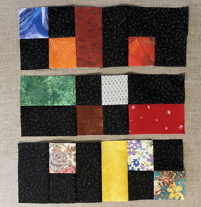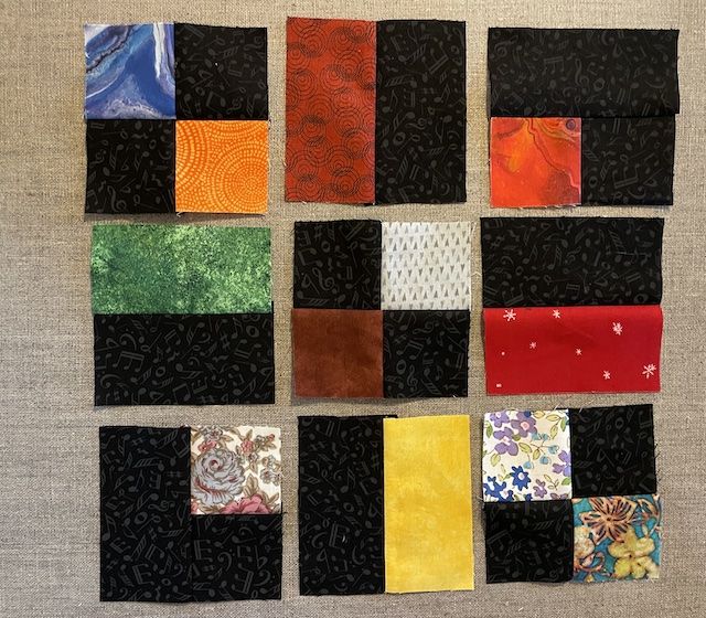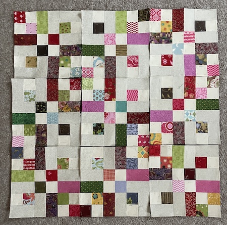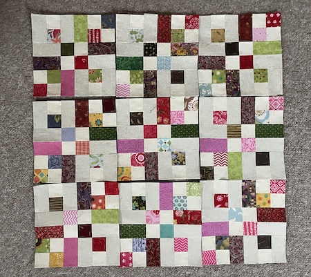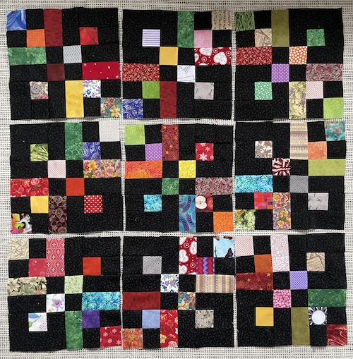 Sy resten af dine A-B og C blokken sammen så du har 9 ens blokke som her på billede.