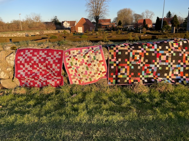 Ja jeg må jo heller rette det til tæpper, for jeg har jo også syet et i hånden - det har lys baggrund og ja et i kun 2 farver/stoffer.