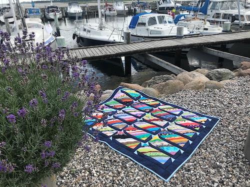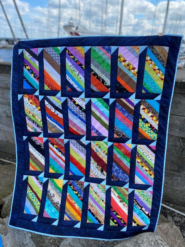 Forside » Gratis DIY og Inspiration » Patchworktæpper med danske bynavne 🇩🇰 » Restetæppe på skrå med skygge virkning - gratis DIY. Sæby tæppet
