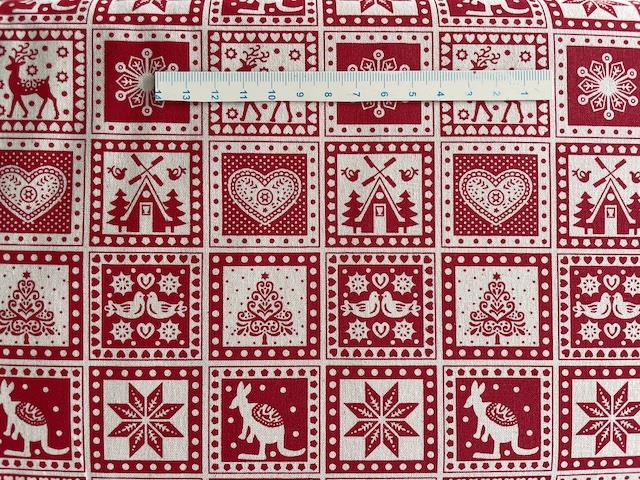 Rød beige brede julestoffer - Tern er et meget smukt 100% bomuld stof der er 150 cm bred.
