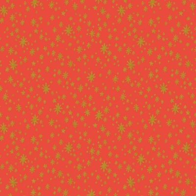 Dette meget smukke klassiske røde jule patchwork stof har rød bundfarve med masser af små guld stjerner i mange størrelser og retninger.