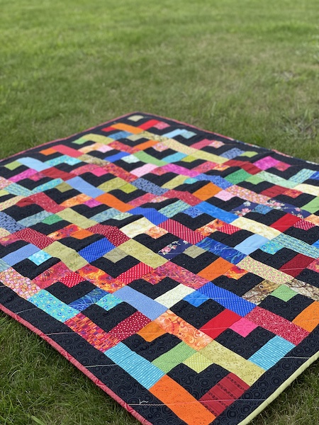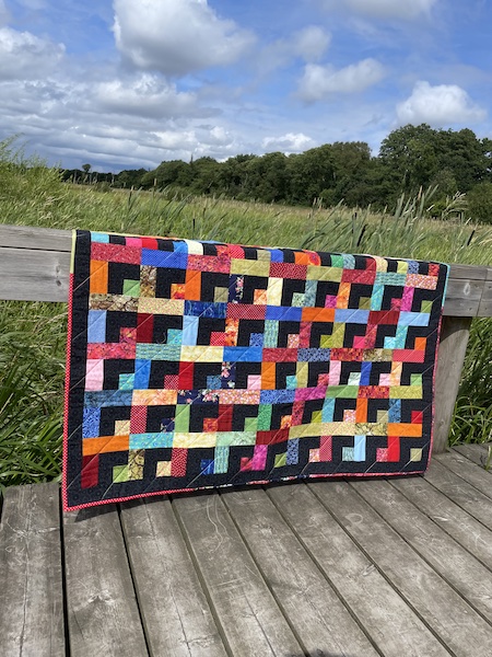 Har quiltet diagonalt med en meleret quiltetråd i alle de farvet stoffer.