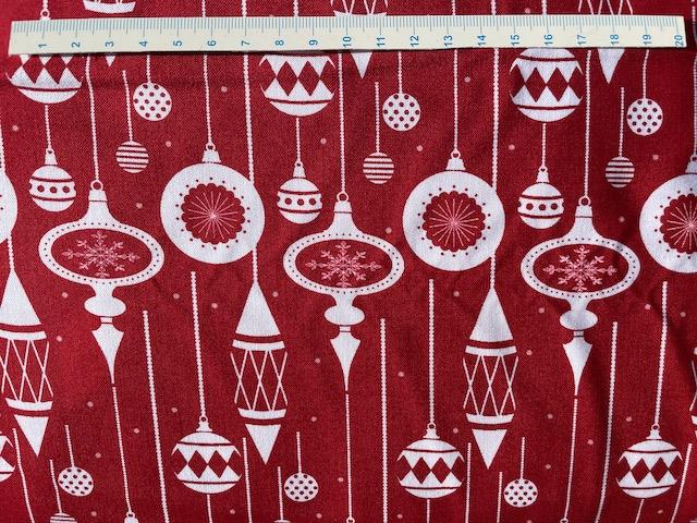 Dette røde og meget flotte jule patchwork stof er 110 cm bred,
