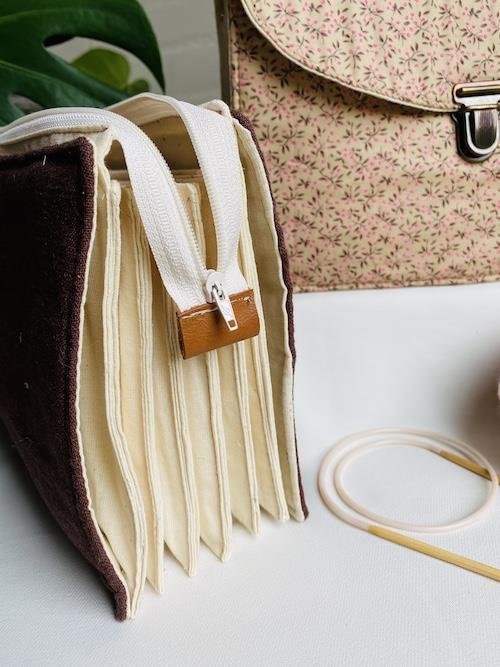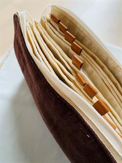 RundpindeEtuiet er bygget op som en harmonika med hele 11 rum i. Rummene har en lædersnip syet med i den øverste søm. På lædersnipperne kan du skrive tal, der viser, hvor tykke rundpinde, der er i hvert rum. Desuden kan der syes en lomme til fx aftagelige rundpinde eller andet grej forrest og/eller bagerst i etuiet.