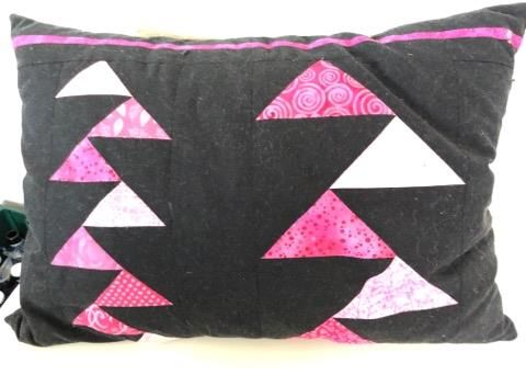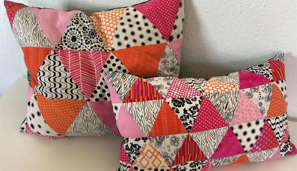 Tag noget stof med hvor der er noget kontrast med en mørk eller lys bund og så lave en, 2 eller 3 rækker med 3kanter i lækre farver som sættes i en dækkeserviet, grydelap eller måske en toilettaske - noget som kan laves færdig på en søndag!