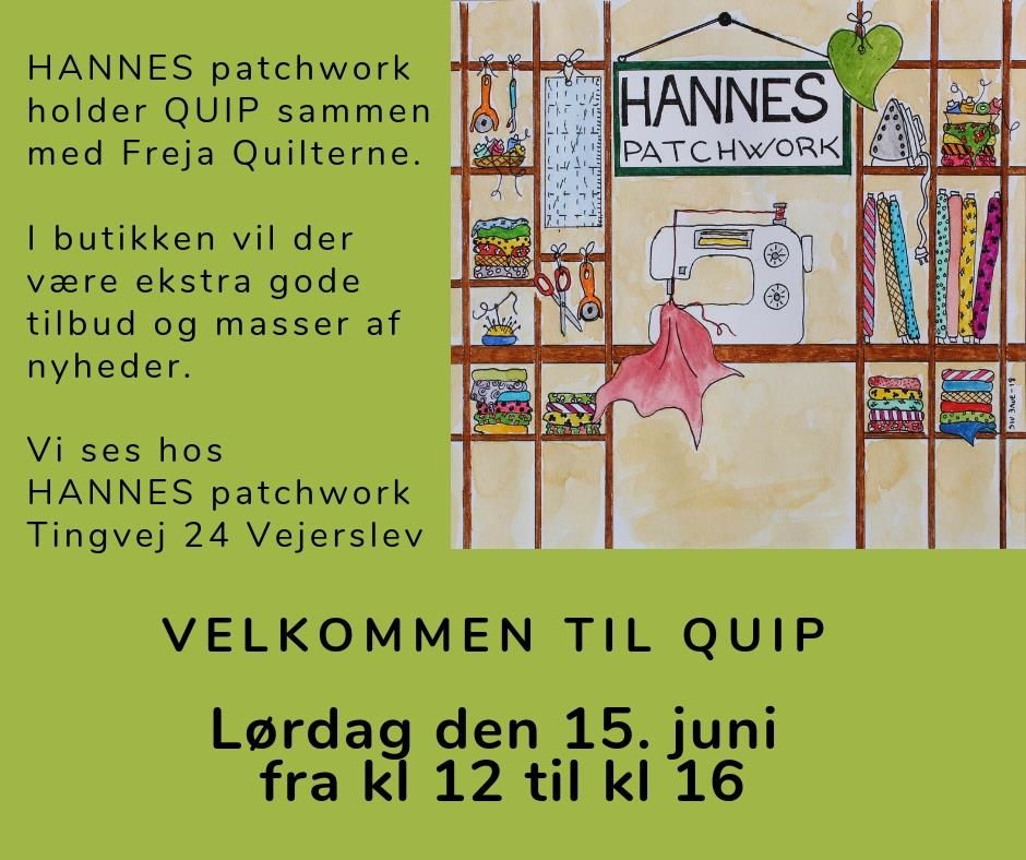 Ja det skal vi da også i Vejerslev - hos HANNES patchwork er der QUIP fra kl 12 til kl 16.