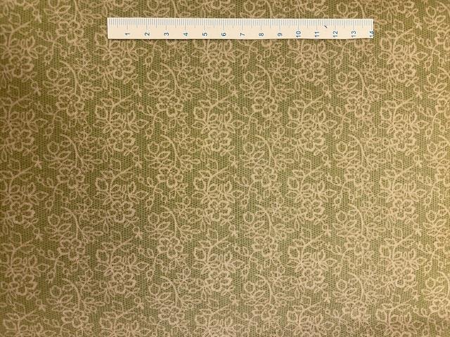 Dette meget flotte sart grønne patchworkstof er 110 cm bred.