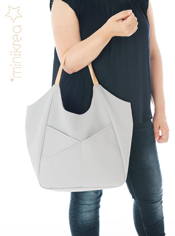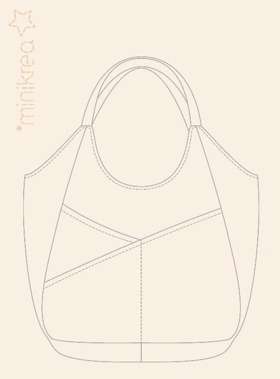 Skuldertaske MiniKrea mønster 112, er et meget enkelt mønster i str one size til mange formål. Den er rummelig taske har et flot snit med udvendige skrå lommer.