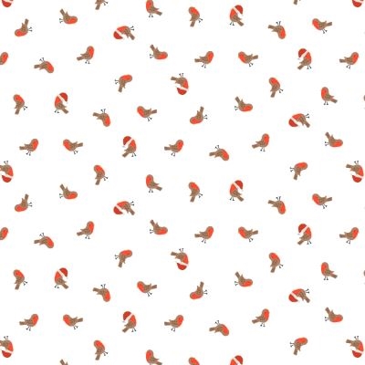 Dette meget smukke jule patchwork stof har hvid bundfarve med masser af små søde fugle - nogle med og andre uden nisse hue.